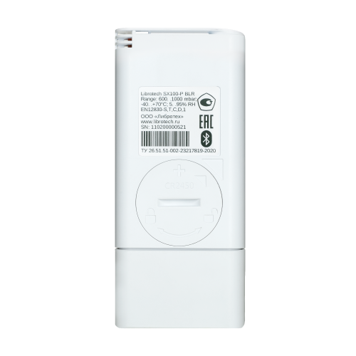 Librotech SX100-P BLR (Bluetooth Long Range) измеряет параметры микроклимата с помощью встроенных датчиков, сохраняет данные во внутреннюю память и передаёт с помощью беспроводного радиоканала в облачный сервис librotech.online или аналогичный.