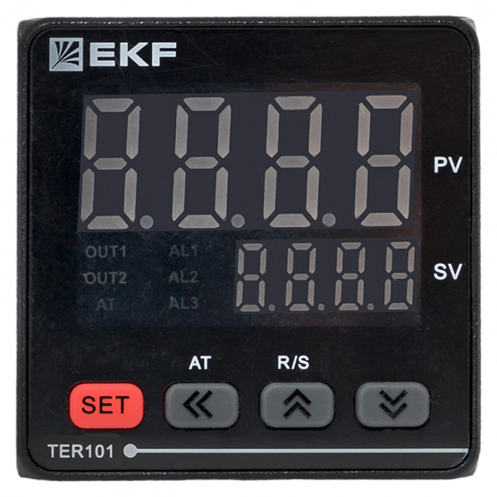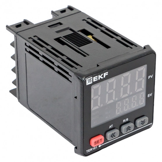 Измеритель-регулятор EKF TER101-S-CV-M1A-R, предназначенныый для контроля и автоматического регулирования параметров технологических процессов. Приборы TER101 могут использоваться для измерения и регулирования различных параметров (температура, давление, уровень, влажность, расход и т.п.) в системах отопления, водоснабжения, в печах, сушильных шкафах, пастеризаторах, терпопластавтоматах, экструдерах, в холодильной технике и другом технологическом оборудовании. Устройства универсальны и могут работать в режиме измерителя, ON/OFF-регулятора и ПИД-регулятора. В режиме регулятора прибор может работать как для нагрева, так и для охлаждения контролируемой среды. В режиме ПИД-регулятора устройство имеет возможность как ручной, так и автоматической настройки. Устройство имеет 1 вход для измерения, 1 выход для управления и до 2-х выходов для сигнализации. Выходы сигнализации также можно использовать в качестве выходов управления. Встроенный интерфейс RS-485 (протокол Modbus RTU) позволяет использовать TER101 в распределенных системах диспетчеризации. Устройства устанавливаются в щит и имеют корпус с повышенной пылевлагозащитой IP65.