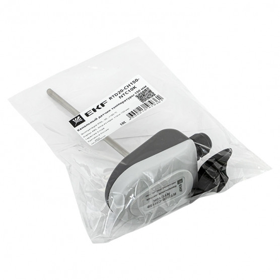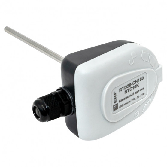Канальный датчик температуры 150 мм EKF RTD20-CH150-NTC10K - устройства, предназначенные для непрерывного измерения температуры в системах HVAC (ОВиК - отопления, вентиляции и кондиционирования). Датчики представлены в трех сериях: кабельные RTD10, корпусные (с клеммной головкой) RTD20 и комнатные RTD30. Датчики температуры EKF RTD разработаны и изготовлены в России, а также являются полными аналогами датчиков температуры европейских производителей. EKF RTD оснащаются разными типами сенсоров: Pt100, Pt1000 и NTC10k. По способу монтажа делятся на: канальные, врезные (погружные), накладные, наружные и комнатные. Могут работать как жидкими, так и с газообраными средами, неагрессивными к материалам датчиков. Компания EKF принимает заявки на изготовление уникальных модификаций датчиков под Ваши требования.