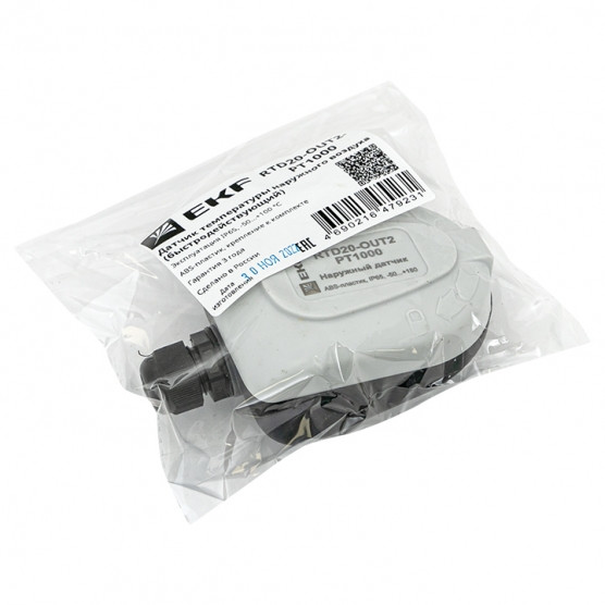 Датчик температуры наружного воздуха (быстродействующий) EKF RTD20-OUT2-PT1000 - устройства, предназначенные для непрерывного измерения температуры в системах HVAC (ОВиК - отопления, вентиляции и кондиционирования). Датчики представлены в трех сериях: кабельные RTD10, корпусные (с клеммной головкой) RTD20 и комнатные RTD30. Датчики температуры EKF RTD разработаны и изготовлены в России, а также являются полными аналогами датчиков температуры европейских производителей. EKF RTD оснащаются разными типами сенсоров: Pt100, Pt1000 и NTC10k. По способу монтажа делятся на: канальные, врезные (погружные), накладные, наружные и комнатные. Могут работать как жидкими, так и с газообраными средами, неагрессивными к материалам датчиков. Компания EKF принимает заявки на изготовление уникальных модификаций датчиков под Ваши требования.