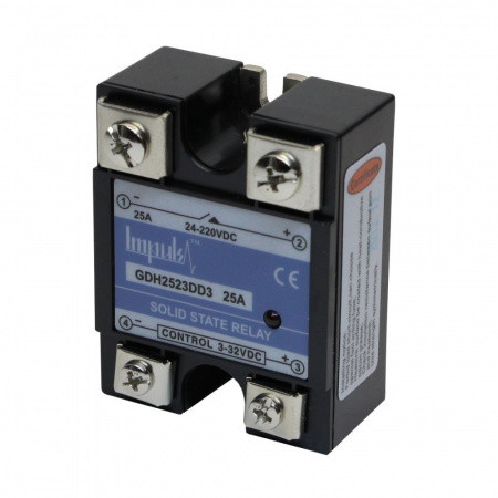 Твердотельные реле для коммутации постоянного тока GDH2523DD3 с управлением 3...32V DC имеют широкое распространение в различных областях промышленности и в быту. Типичное применение - системы нагрева с ТЭНами. GDH2523DD3 способно коммутировать постоянное напряжение 5...220 Вольт при токе до 25 Ампер. Твердотельное реле может устанавливаться на радиатор SSR-1, SSR-D, SSR-14, SSR-16.